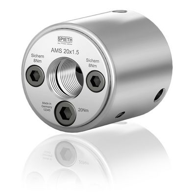 AMS SPIETHクランピングナット AMSは、小さなボルトの締め付け力で、強力な軸方向推力を生み出す倍力メカニズムを持ち、信頼性の高い推力を発揮する 機械要素としてワークなどの固定に使用されます。 ワークには、回転力を与えず、純粋な推力のみを与え、さらにロックボルトによる、緩み安全対策も施されています。 対応ねじ径 M20〜80mm クランプ推力:30〜100 kN ご要望によりカスタムメイドもご提供可能です。
